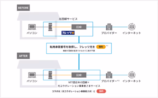 ※NTT東日本・NTT西日本の「フレッツ光」をご利用しているお客様は新たに工事等をすることなくそのまま安心してご利用いただけます。